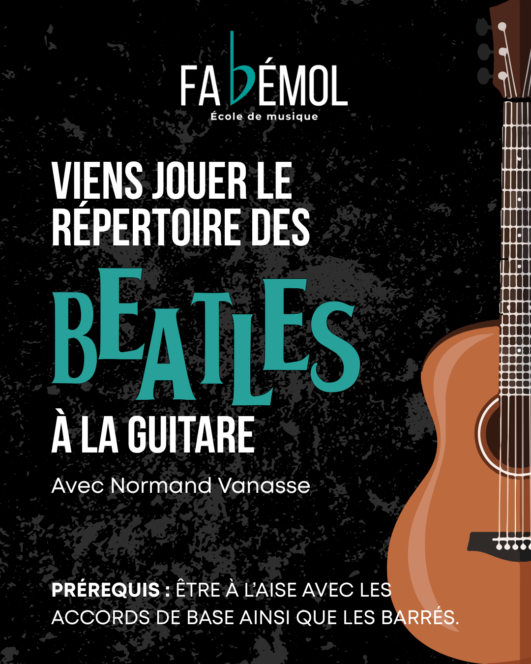 PRÉREQUIS : Être à l’aise avec les accords de base ainsi que les barrés. Être un· e vrai·e « beatlemaniac » !